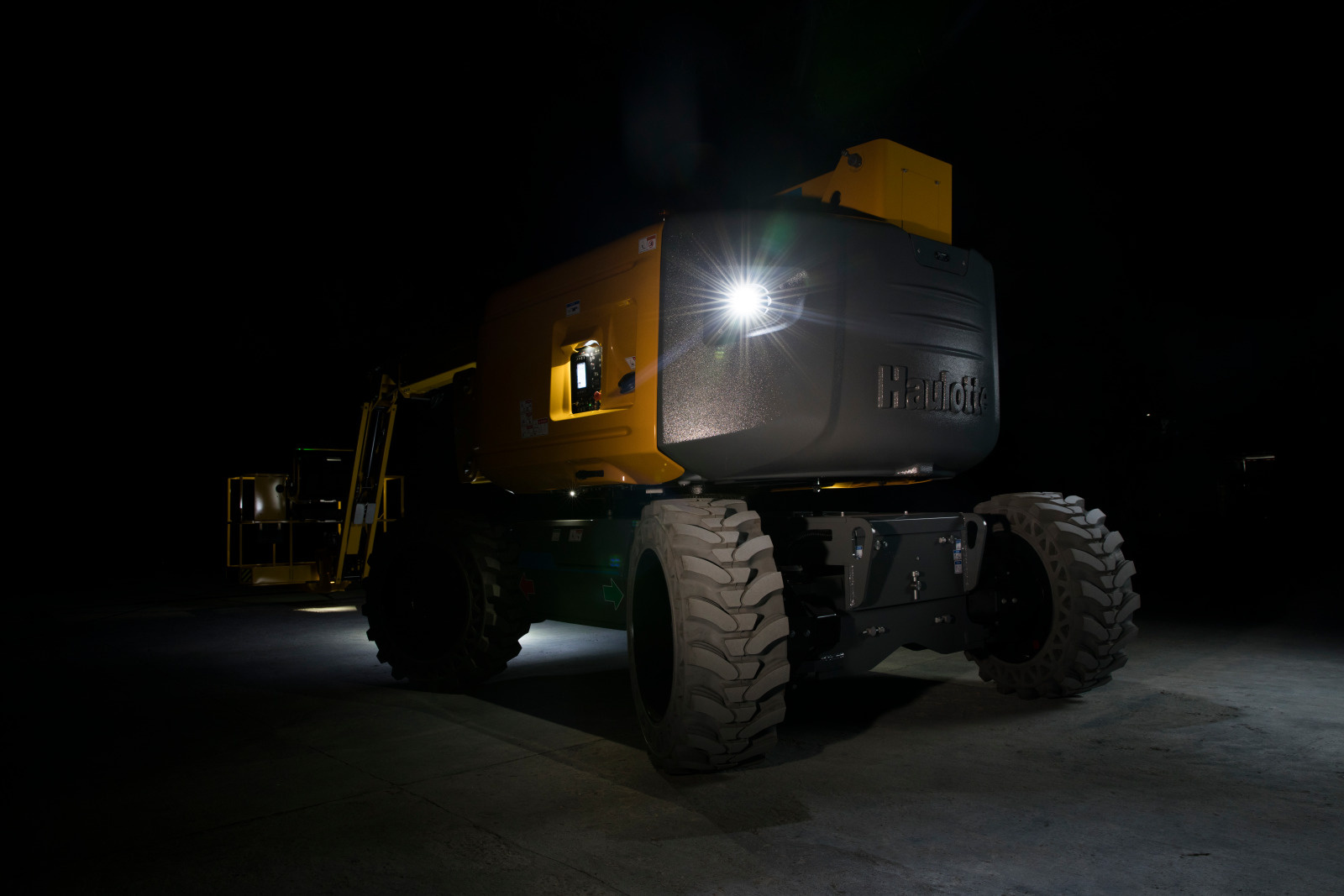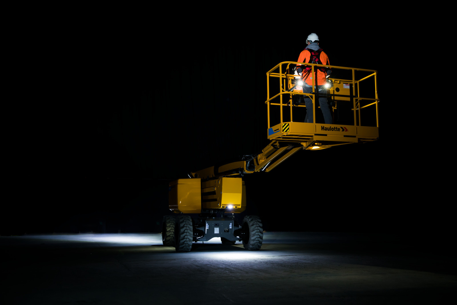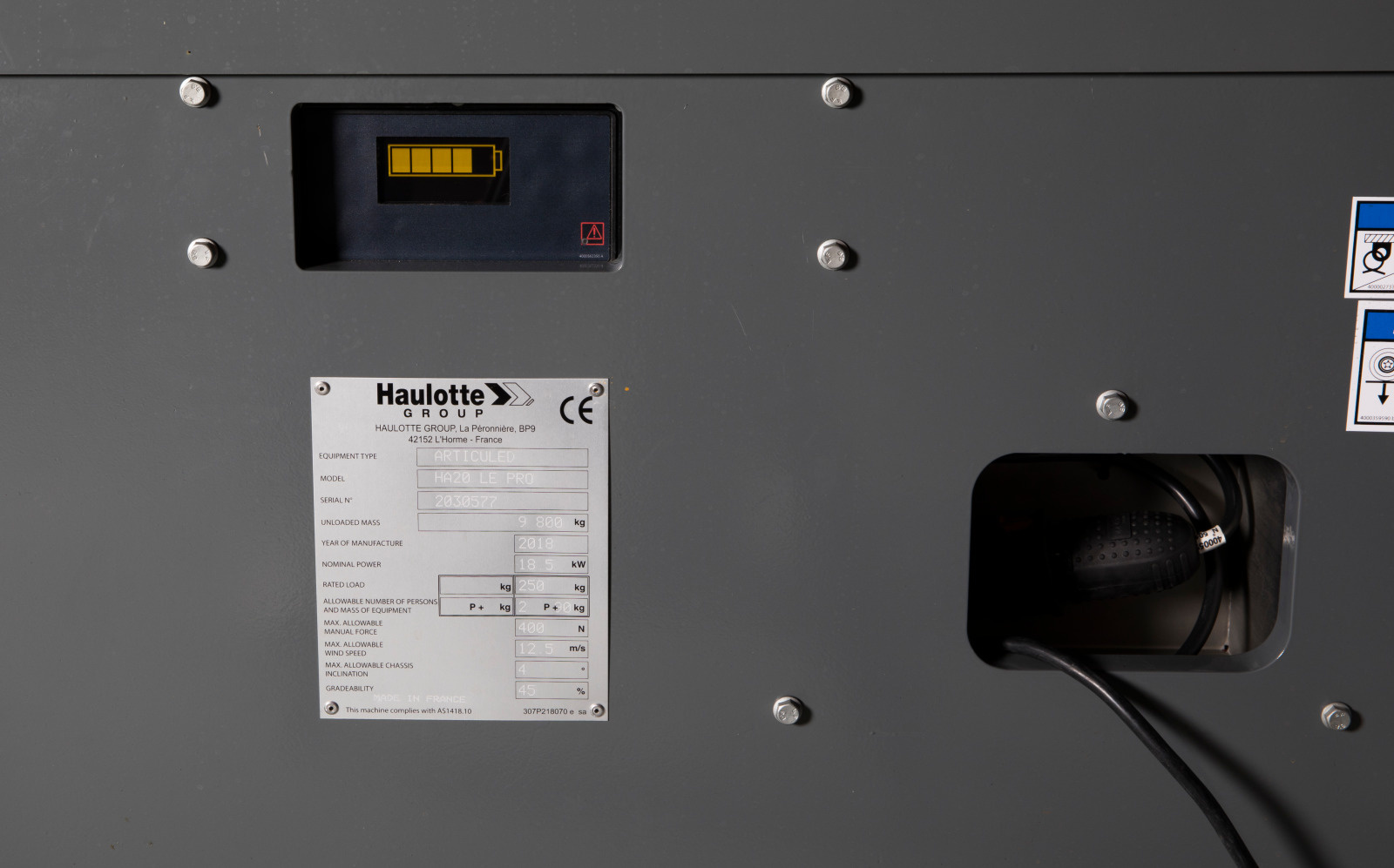 Podnośnik przegubowy Haulotte HA20 LE PRO - wysokość robocza 20,3 m, zasięg boczny 11,9 m i udźwig 250 kg. Maszyna, dzięki wyposażeniu w napęd 4x4, pływającą oś, ogumienie terenowe niebrudzące sprawdzi się w terenie, a dzięki zasilaniu akumulatorowemu z powodzeniem może zostać wykorzystana także do pracy wewnątrz wysokich obiektów.